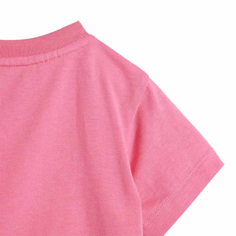 Perfeita para compor diversos looks, essa camiseta rosa é uma ótima opção para as mães que buscam peças práticas e versáteis para seus filhos. Combine com calças, shorts ou saias para um visual despojado e cheio de personalidade.
