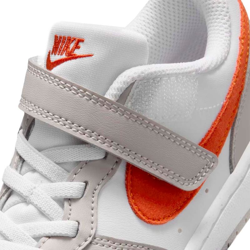 Com o design clássico da Nike, esse tênis na cor BRANCO é versátil e combina com diferentes looks, desde os mais despojados até os mais arrumadinhos. Seu fechamento em cadarço permite um ajuste perfeito nos pezinhos dos pequenos, garantindo segurança durante as atividades.